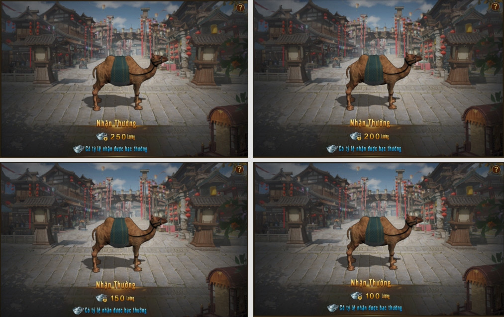 Tại Phượng Hoàng Thành, sau khi trả một khoản phí nhất định thì huynh tỷ sẽ có thể nhận được Thương Hội Lạc Đà, sau khi hộ tống thành công về Vương Thành, huynh tỷ sẽ nhận được vô số bạc khóa và có xác xuất nhận được cả bạc thường đó.