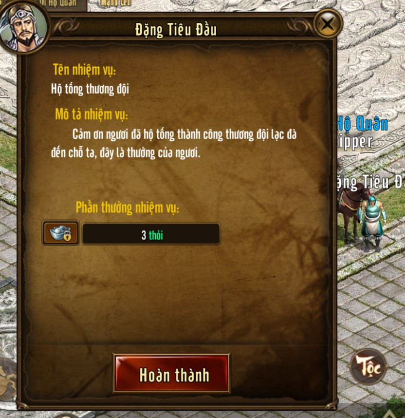 Bước 6: Hộ tống Thương Hội Lạc Đà và di chuyển về tìm NPC Đặng Tiêu Đầu báo cáo hoàn thành nhiệm vụ Thương Hội