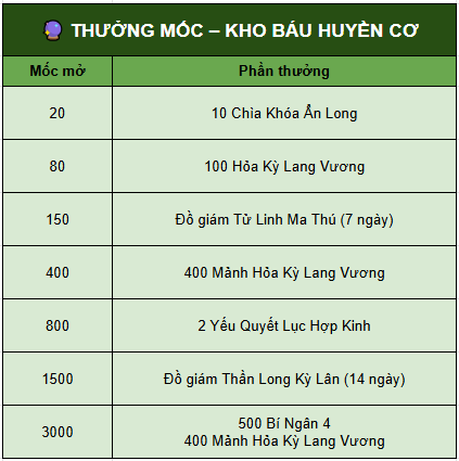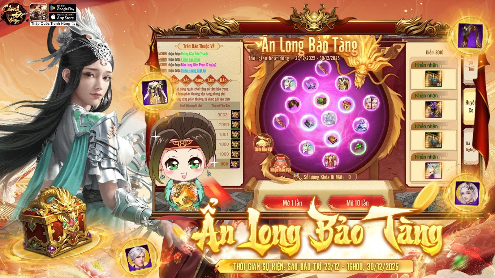 Giữa thời khắc cuối năm phong vân hội tụ, long khí chuyển mình khắp Chinh Đồ, Bảo Tàng Ẩn Long 4.0 chính thức khai mở – nơi cất giấu những rương báu cổ xưa, chỉ dành cho anh hùng dám bước vào thử vận mệnh!