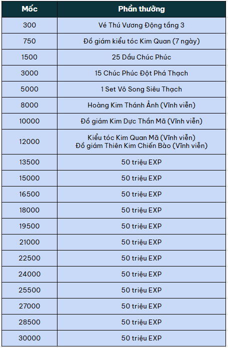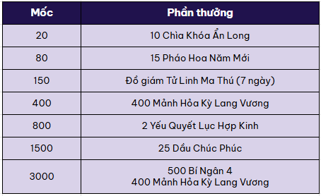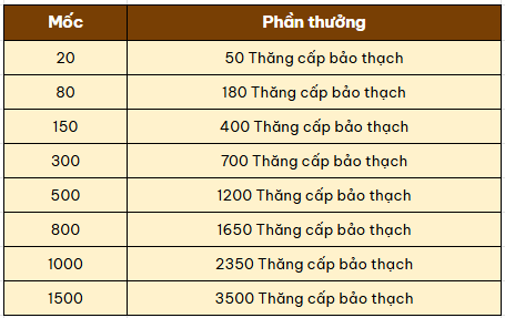 - Cứ mỗi cột mốc mở rương, nhân sĩ sẽ nhận thêm thưởng mốc giá trị.