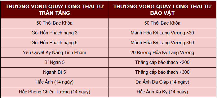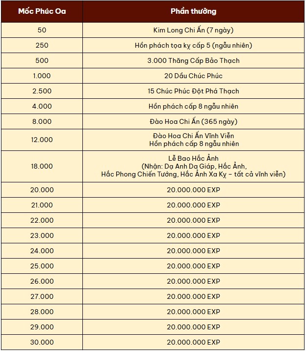 - 00h mỗi ngày: Làm mới toàn bộ phần thưởng